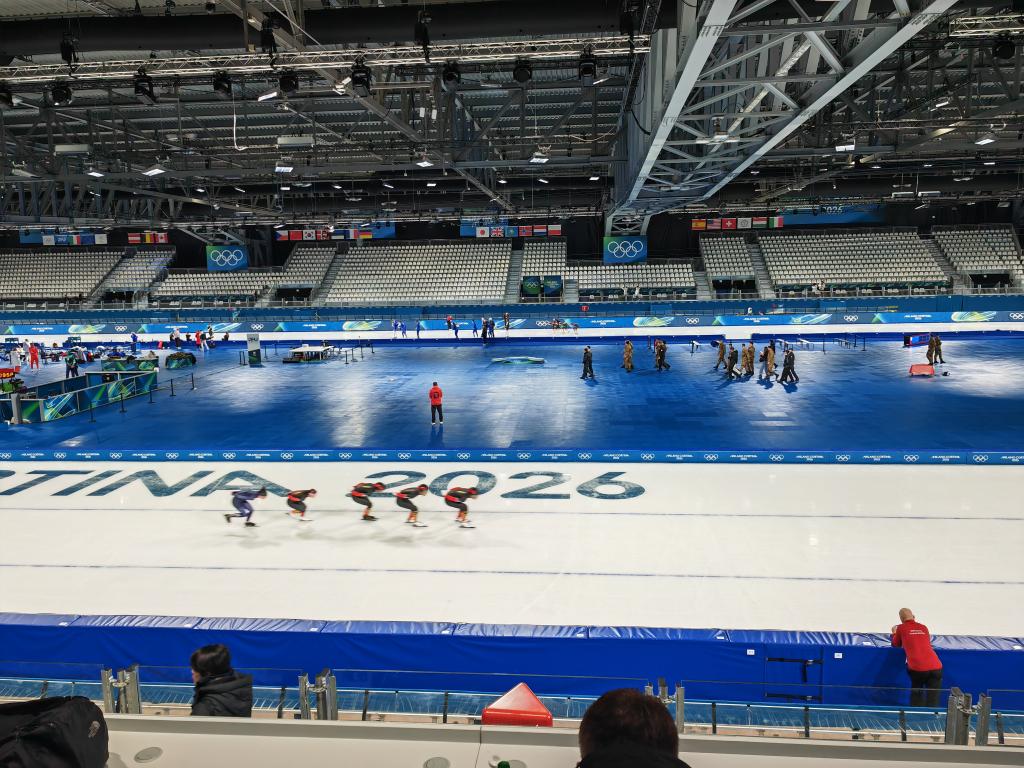 2月2日,中国速度滑冰队运动员在训练中。新华社记者 乐文婉 摄