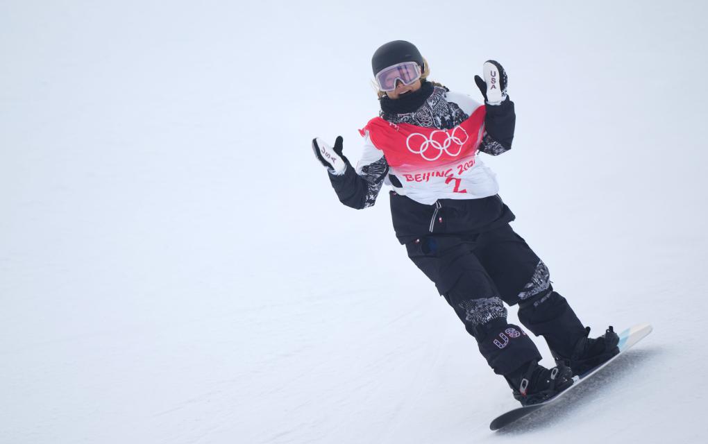 2022年2月10日,美国选手克洛伊·金在北京冬奥会单板滑雪女子U型场地技巧夺冠后。新华社记者 彭子洋 摄